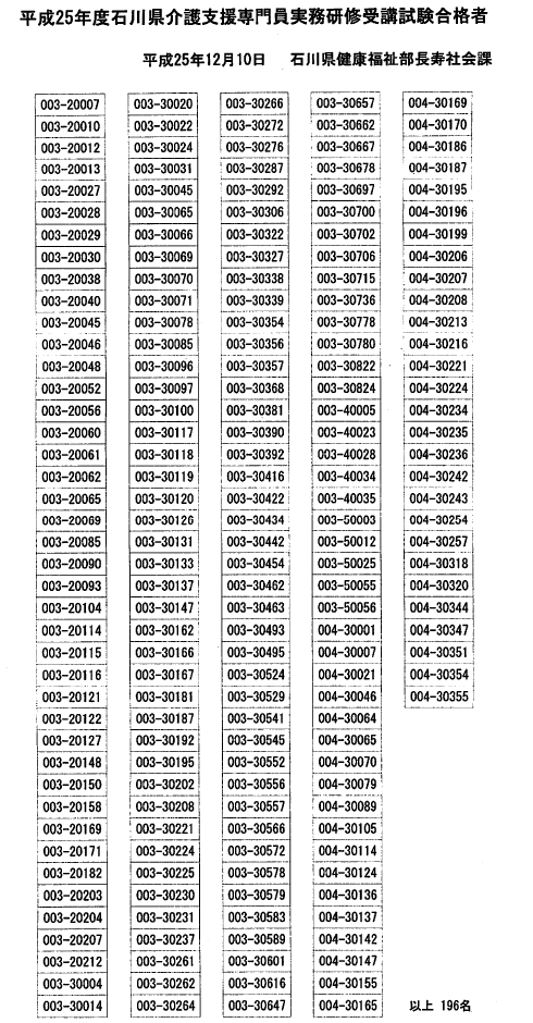 石川県 第16回介護支援専門員実務研修受講試験合格発表